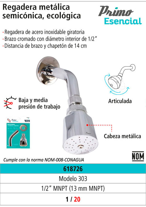 REGADERA PARA BAÑO ACERO INOXIDABLE Artexa