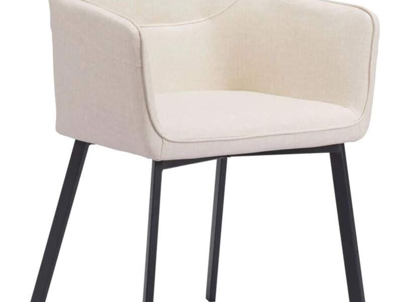 Silla con brazo en imitación piel, color beige y pata metálica color negro mate