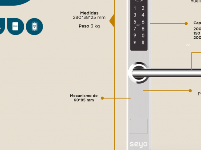 Capacidad de datos 200 Huellas dactilares 150 Códigos personalizados 200 Tarjetas de acceso