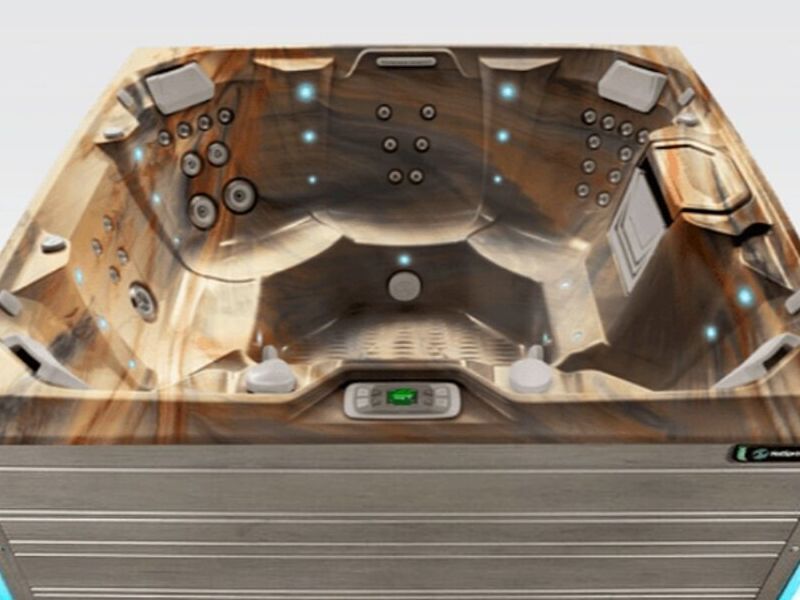 El espacioso interior del modelo Pulse tiene capacidad para siete adultos en un spa que se adapta cómodamente a la mayoría de los patios. Incluye un podómetro con chorros con siete chorros direccionales de precisión para un masaje de pies penetrante desde cada asiento.