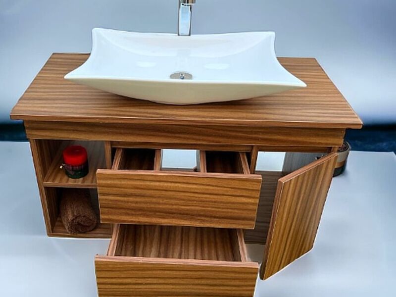 Un conjunto diseñado específicamente para el almacenamiento y la organización de artículos de tocador y productos de higiene personal en el baño.