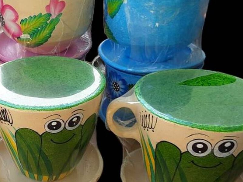 Hermoso macetero de barro fabricado de forma artesanal por mujeres mexicanas diseño bonito e ideal para decorar tu jardin con maceteros diferentes y artesanales .