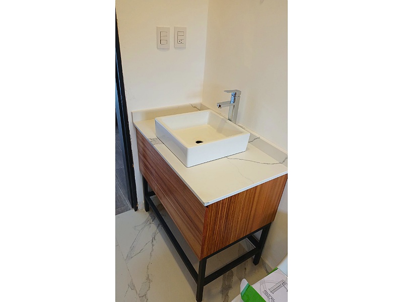 Mesón de cuarzo para baño combina estilo y funcionalidad, ofreciendo una superficie duradera y resistente a la humedad, perfecta para crear un ambiente moderno y elegante en el espacio.