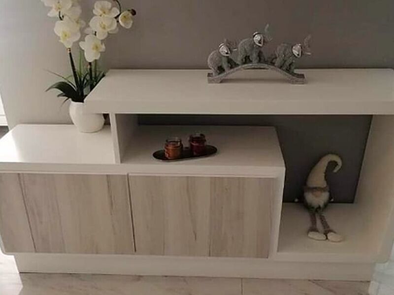 Mueble pequeño y versátil que complementa el mobiliario principal de una habitación.