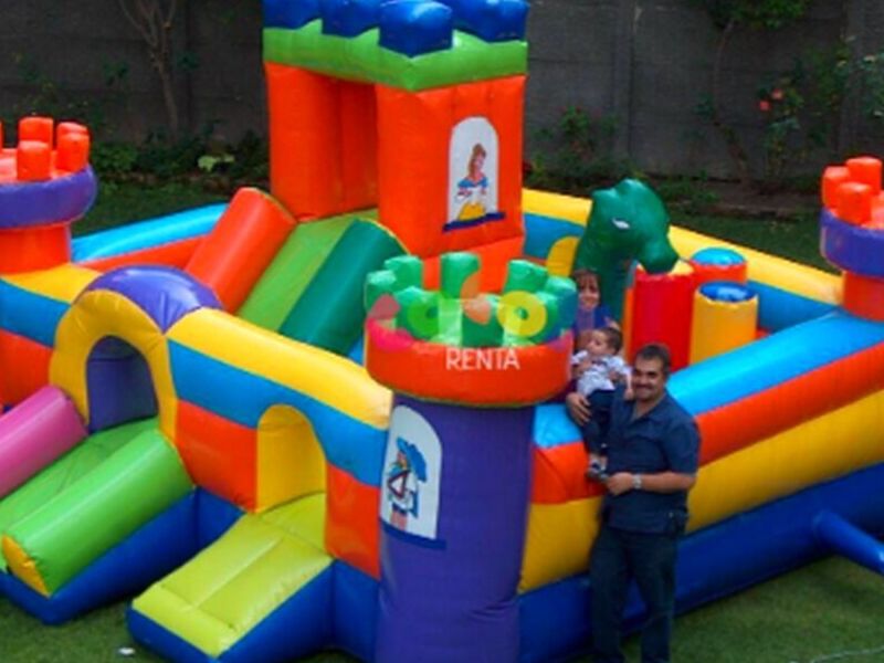 El castillo más grande con gran capacidad, diseñado para preescolares, cuenta con tres accesos, una torre central con escalador, resbaladilla, interactivos y un dragón montable.