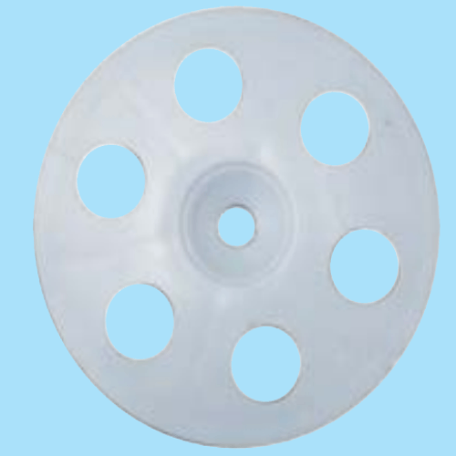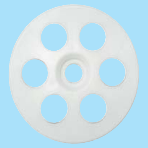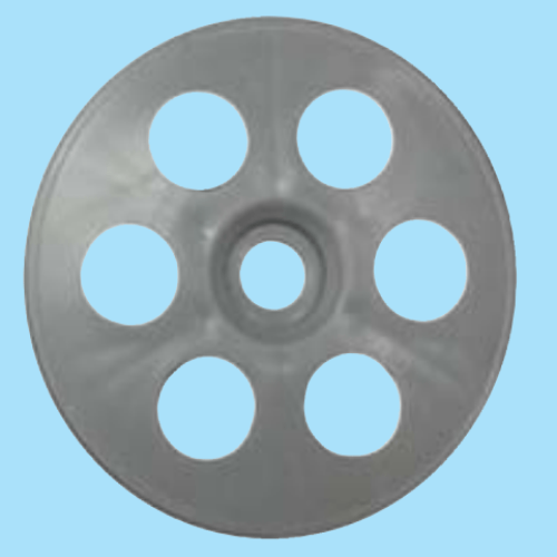 Son accesorios de fijación tipo disco/arandela de gran tamaño que se utilizan para asegurar y distribuir la carga, disponibles en gris (en tres tamaños) y en color marfil, y se venden en cajas de 4,000 unidades.