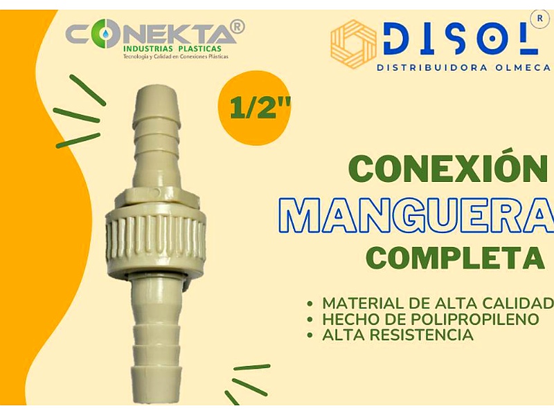 La conexión de manguera completa es un accesorio esencial para asegurar una unión hermética entre mangueras en sistemas de riego o hidráulicos. Fabricada en materiales duraderos, garantiza una conexión segura y estable, evitando fugas y facilitando un flujo continuo de líquido.
