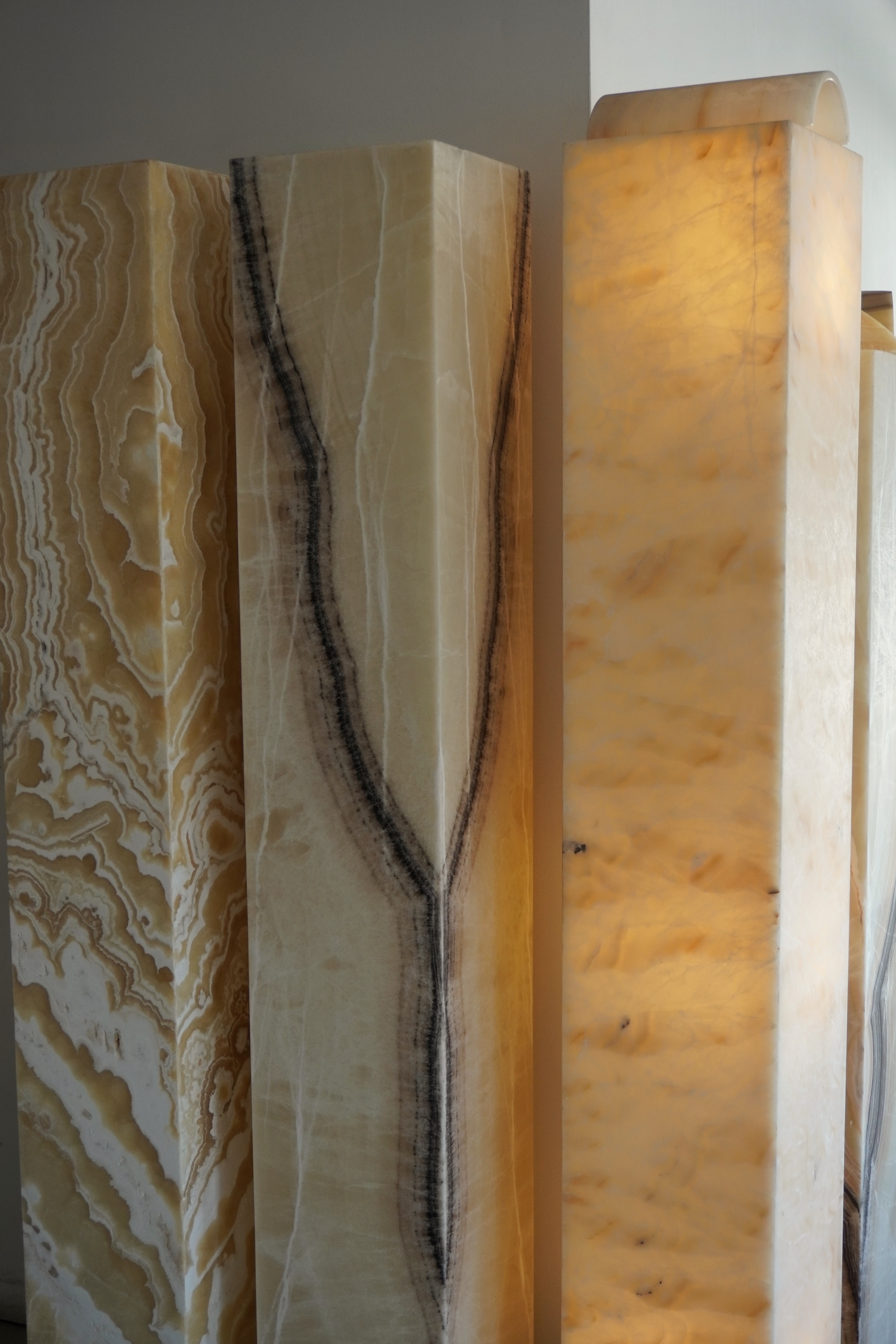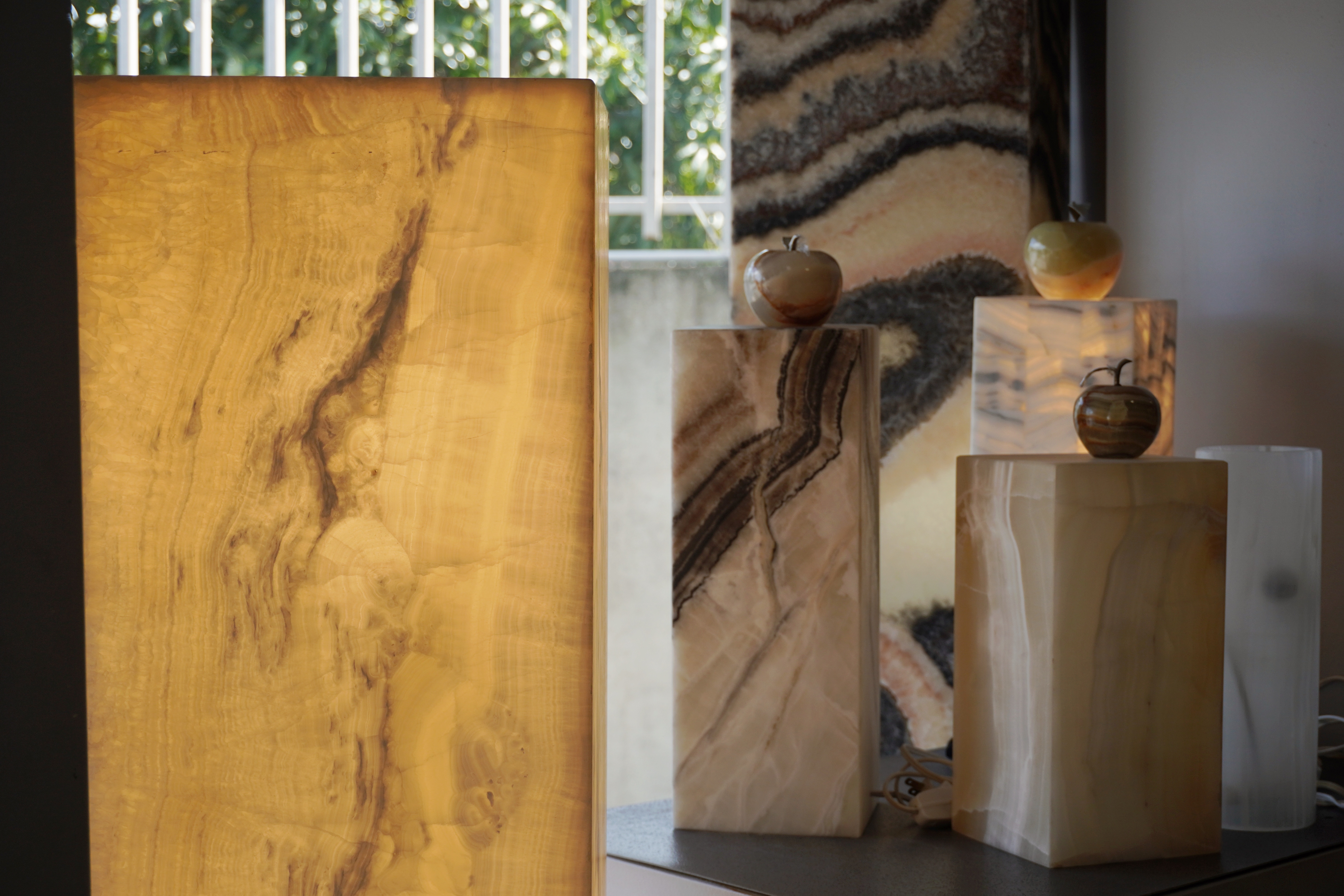 En Dream Stone fabricamos lámparas de pedestal en ónix talladas a partir de una sola pieza de piedra natural. Cada pieza se trabaja respetando la estructura, vetas y transparencia propias del material, lo que permite que la luz revele patrones únicos en cada lámpara.