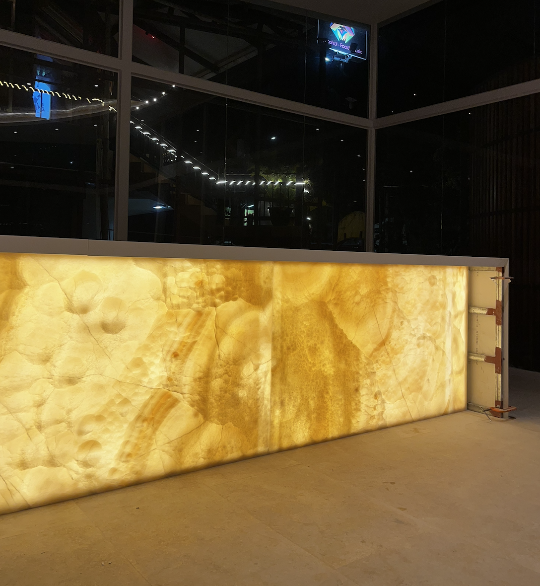 Gracias a su acabado pulido y su resistencia, Ónix Blanco Beige combina belleza y funcionalidad, transformando espacios residenciales y comerciales en ambientes elegantes y exclusivos.