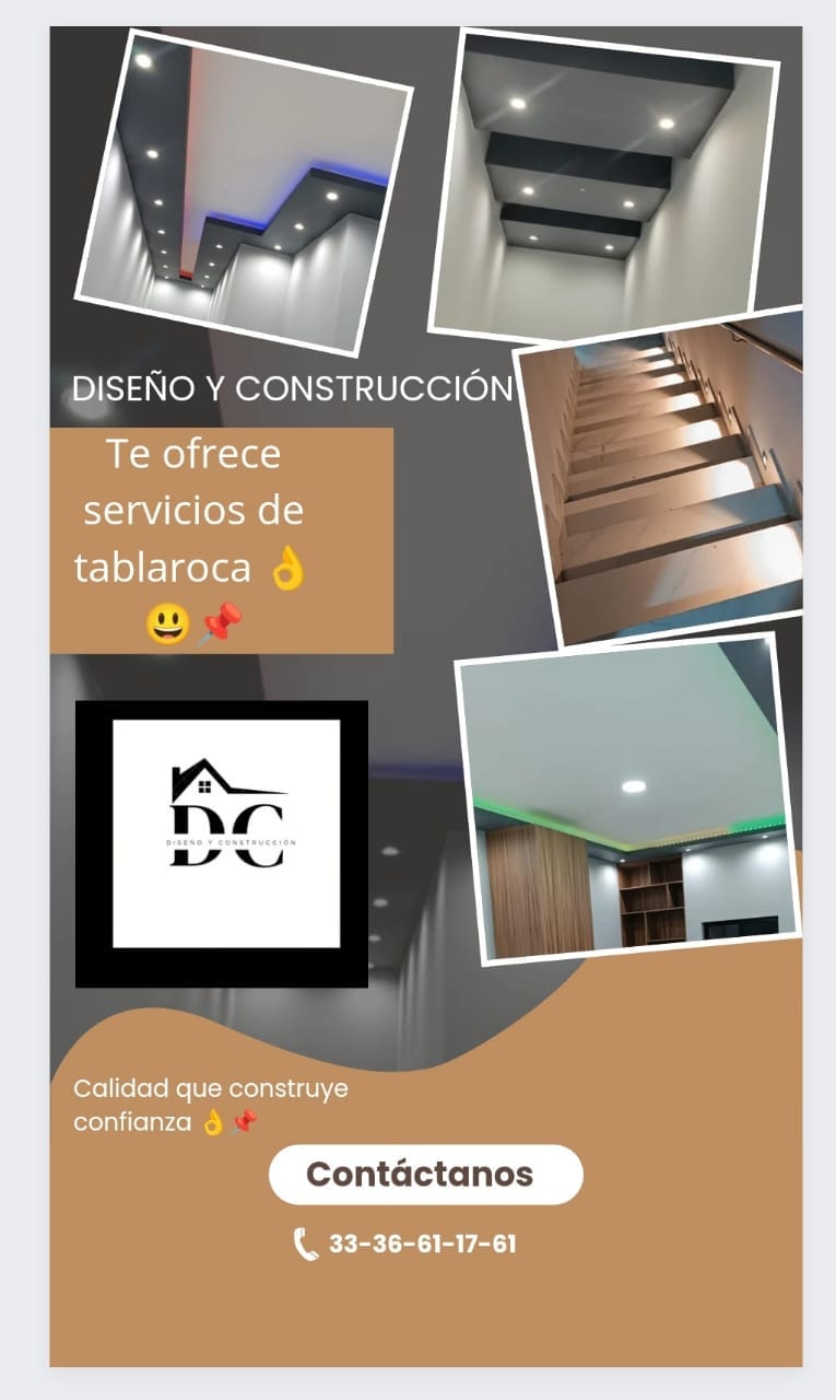 Diseño y Construcción ofrece servicios de tablaroca. Construye confianza con calidad.