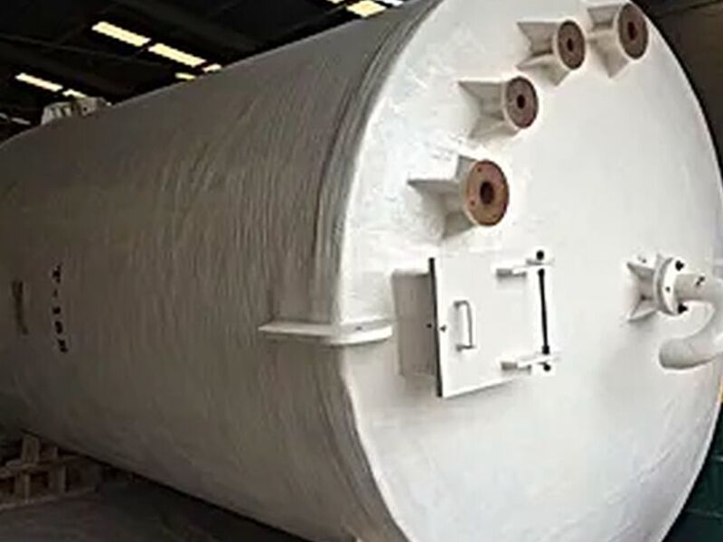 Tanques cilíndricos verticales y horizontales con extremos planos, cóncacos, toriesféricos o semi-esféricos para almacenamiento de corrosivos para instalarse sobre soportes metálicos de concreto o silletas integrales de plástico reforzado.