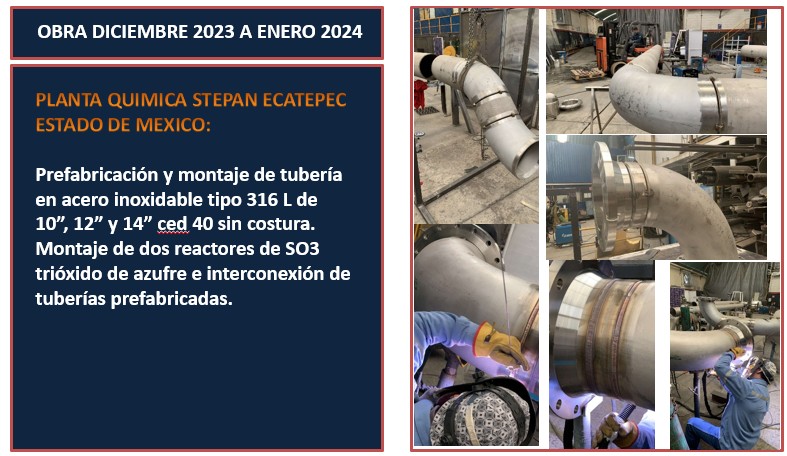 Fabricación de arreglos de tuberías, accesorios, bombas, interconexión a equipos de generación y de producción.