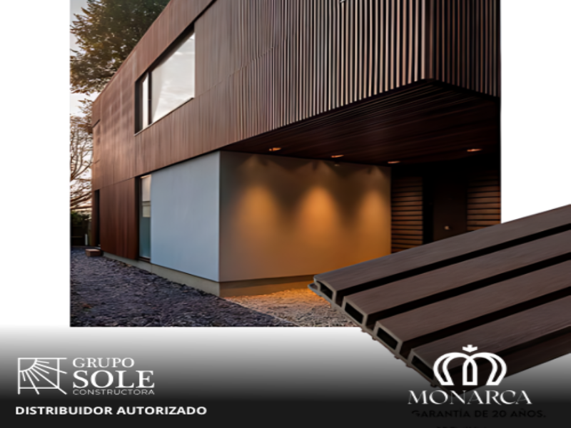 En Grupo SOLE ofrecemos el Lambrín WPC Monarca, una solución moderna y duradera para revestimientos interiores y exteriores. Fabricado con una mezcla de fibras de madera natural y polímeros plásticos (Wood Plastic Composite), este material combina la calidez estética de la madera con la resistencia y bajo mantenimiento del plástico, ideal para proyectos residenciales y comerciales.