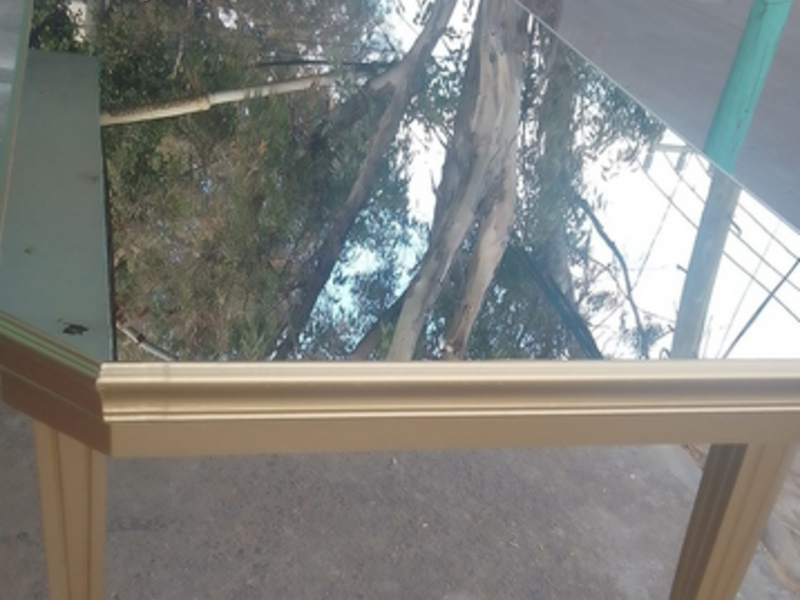 Mesa rectangular hecho en madera y espejos relucientes ideal para interior