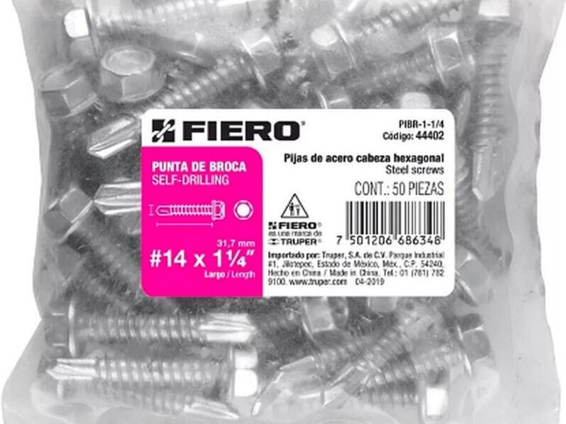 Sujetador diseñado para perforar y roscar un agujero en un solo paso sin la necesidad de hacer un agujero previamente con una broca. Estos tornillos están diseñados para sujetar materiales juntos de manera rápida y eficiente, y son comúnmente utilizados en la construcción, la carpintería, y otras aplicaciones donde se necesitan fijaciones robustas.