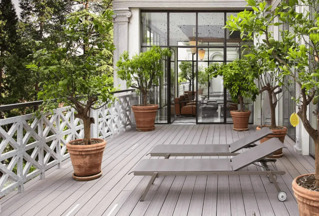 Deck sintético disponible en versión comercial y residencial. Para uso exterior, antiderrapante, sin astillas, duradero y resistente a la intemperie. Ideal para terrazas, albercas, jardínes.