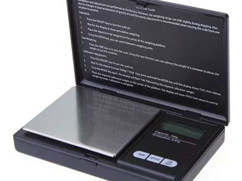 Con pantalla LCD Capacidad de escala: 500 g/ 0,01 g Unidad de conversión: g, Oz, Ozt, dwt,ct y gn Sistema Tare: Elimina el peso del recipiente midiendo solo el contenido Utiliza 2 pilas tipo “AAA” 1,5 V cc (incluidas).