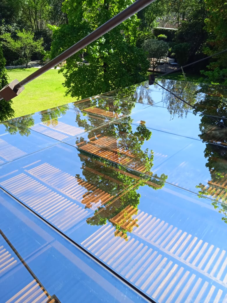 Domos de vidrio templado y control térmico, sellado estructural garantía de 7 años.