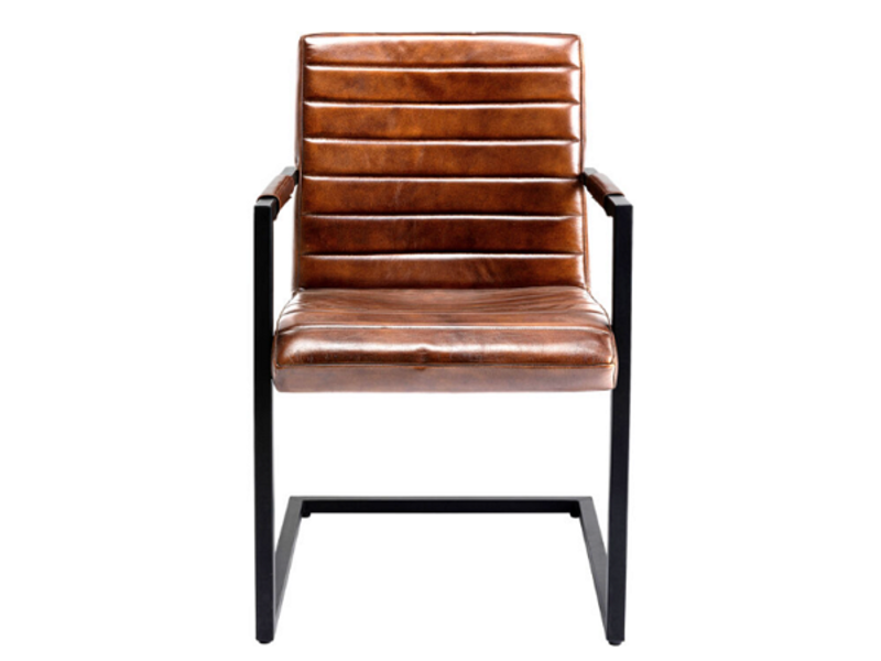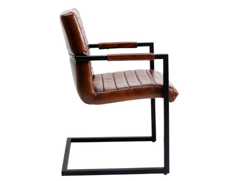 Casi ningún otro material que el cuero genuino ofrece tantos factores de bienestar. Su agradable tacto incita a tocarlo y nunca se siente demasiado caliente ni demasiado frío. Para este sillón de cuero hemos utilizado cuero de napa de búfalo. Se caracteriza por su gran tacto y su robustez y envejece estupendamente. Especialmente como silla de comedor en la mesa, una silla de cuero también puntúa por su insensibilidad. Las migas se limpian rápidamente, al igual que una gota de la deliciosa salsa para pasta. El diseño de este sillón marrón también es impresionante. Al ser una silla basculante, el ligero balanceo hace que sentarse durante largos periodos sea cómodo. Y el diseño de una mecedora sigue siendo actual durante toda su vida. El estilo de esta silla con reposabrazos hace que sea fácil de combinar en su hogar. Una combinación perfecta es una mesa de madera, y una combinación con una mesa de comedor moderna queda igual de elegante.