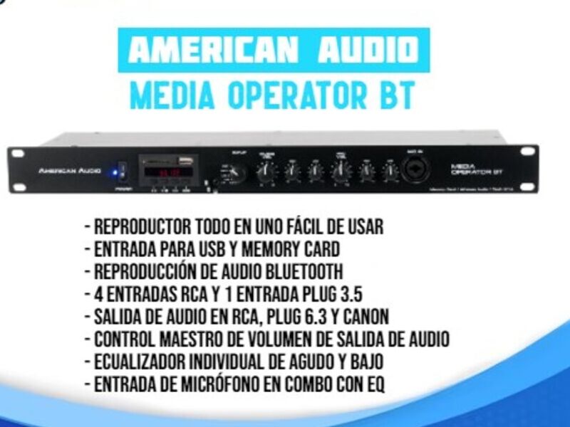 Este reproductor all in one de American Audio es la solución para instalaciones, casas, iglesias, restaurantes, y mil lugares más. ¡Sencillo de usar, compacto y con todo lo necesario para reproducir tu música o micrófono de manera rápida y con excelente calidad!