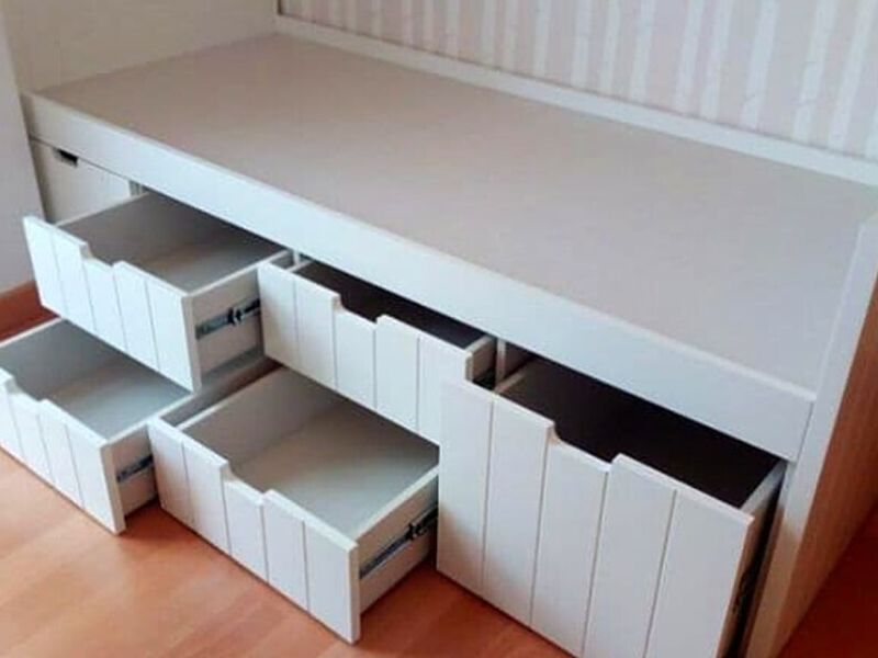 Cama individual con cajonera color blanco