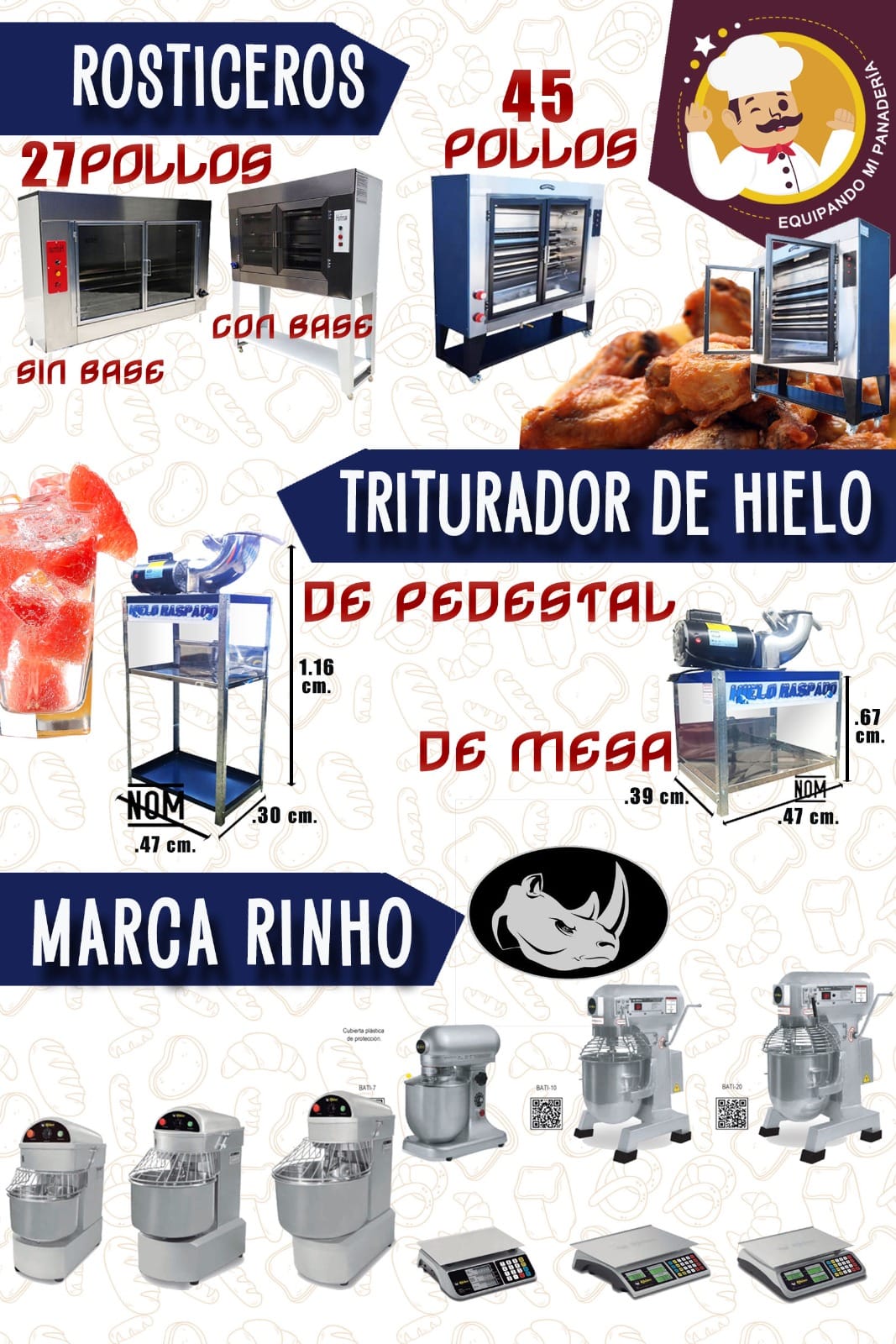 Rosticeros para 27 y 45 pollos, con y sin base. Equipando tu panadería.