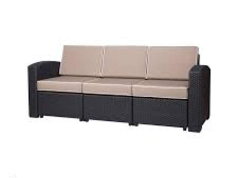 Mueble en polipropileno de alta resistencia y duración para intemperie e interior, resistente a los rayos ultravioleta (UV) y al ambiente salino con terminado en imitación rattán.