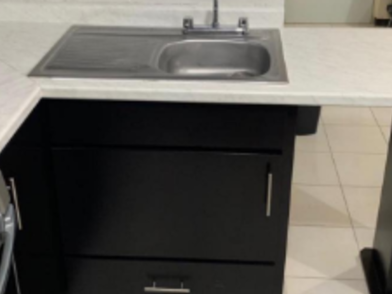 Superficie de trabajo para la cocina fabricada en granito, proporcionando durabilidad y un aspecto moderno. Puede ser parte de una isla de cocina o una encimera.
