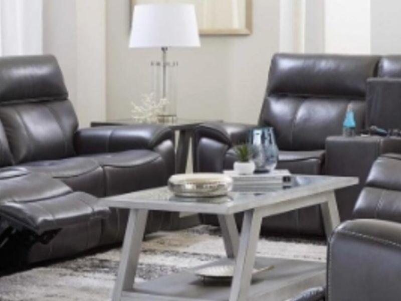 Hermoso sofa con dos asientos reclinables y consola con terminal.