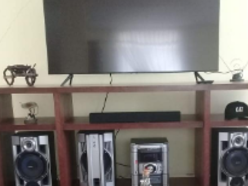 Mueble diseñado para sostener y organizar componentes de entretenimiento, posiblemente con espacio para almacenamiento adicional.