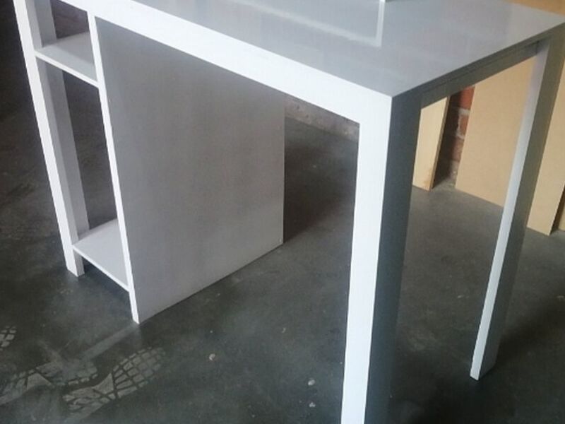 La parte superior del escritorio es una superficie plana donde se puede escribir, colocar una computadora portátil, una computadora de escritorio u otros dispositivos. Esta superficie suele estar hecha de madera, vidrio, metal u otros materiales duraderos.