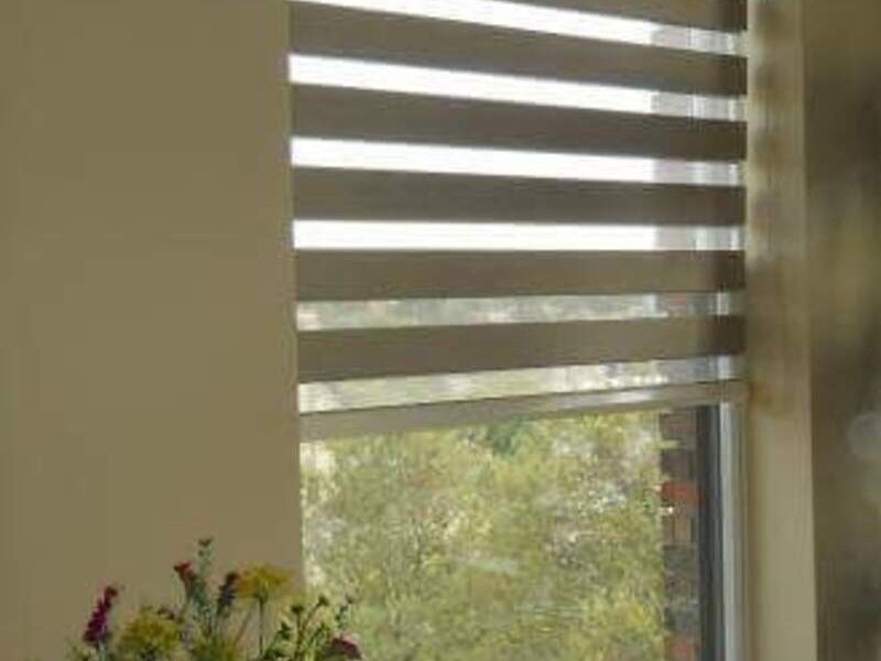 Persianas enrollables de dos capas, una transparente y una translúcida, que permiten controlar la entrada de luz a la habitación. El color café es un tono neutro que combina con cualquier decoración.