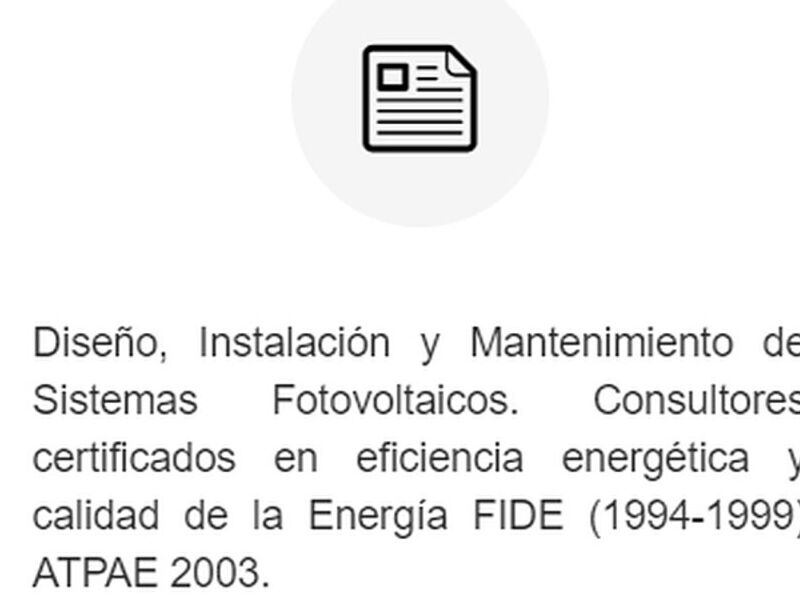 Diseño, Instalación y Mantenimiento de Sistemas Fotovoltaicos. Consultores certificados en eficiencia energética y calidad de la Energía FIDE (1994-1999) ATPAE 2003.