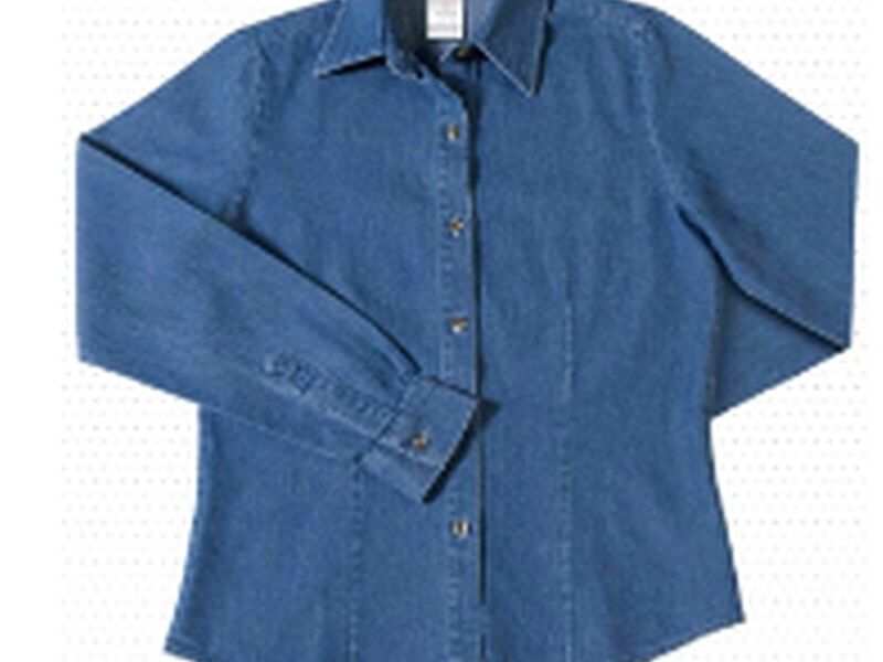BLUSA DE MEZCLILLA MANGA LARGA, CORTE CON SILUETA PARA DAMA TALLA CH-EG. MATERIAL DE MEZCLILLA. COMPOSICIÓN 100% ALGODÓN.
