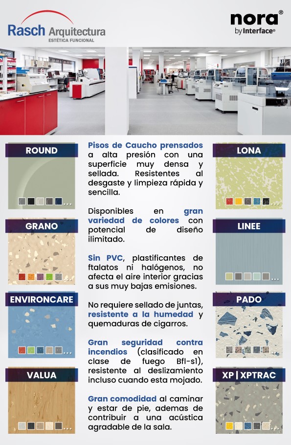 Superficies sin PVC, antideslizantes y conductivas que cumplen con NFPA 99 y Cleanroom Certification.
