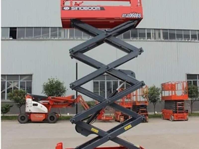 PLATAFORMA TIPO TIJERA ELECTRICA PARA TRABAJO EN ALTURAS CON CAPACIDAD DE 380 KG, A UNA ALTURA DE TRABAJO 8.3 M, PESO BRUTO DE 1,770 KG.