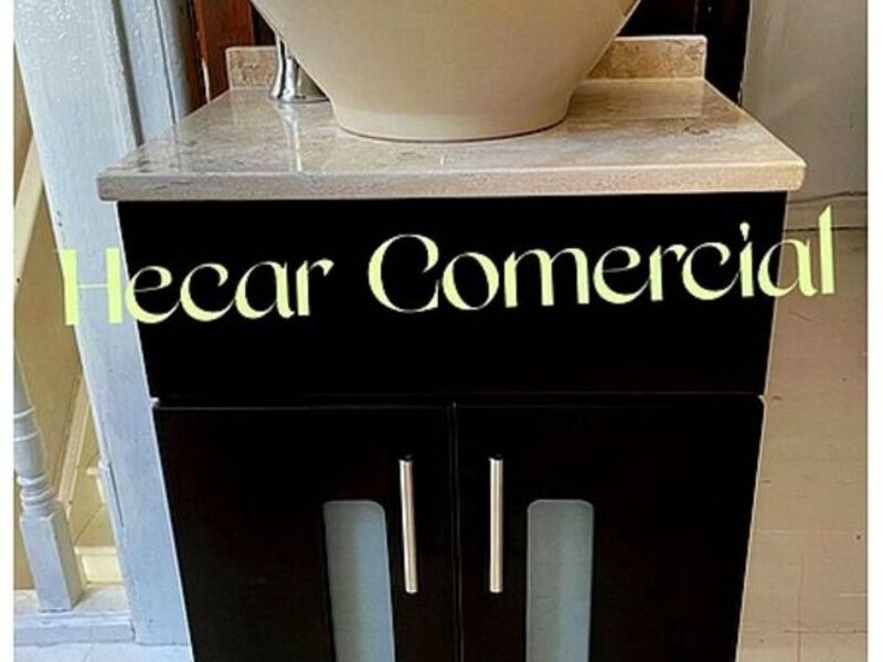 Mueble con base de Mármol para Baño 50x40x80 de alto lavabo minimalista en color hueso o blanco, llave monomando y conexiones.