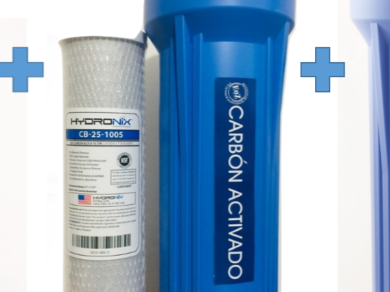 El Filtro para Grifo AquaEOZplus® aunado a dos filtros bajo tarja de carbón activado y de sedimento en 20 micras se recomienda para hogares con agua clorada y con sabor a tierra o moho por presencia de sedimento. Los dos filtros de 2.5x10 pulgadas se instalan bajo su tarja en la línea de agua fría. El filtro AquaEOZplus® se coloca en el grifo y retiene 100% de microbios para asegurar agua segura de tomar.