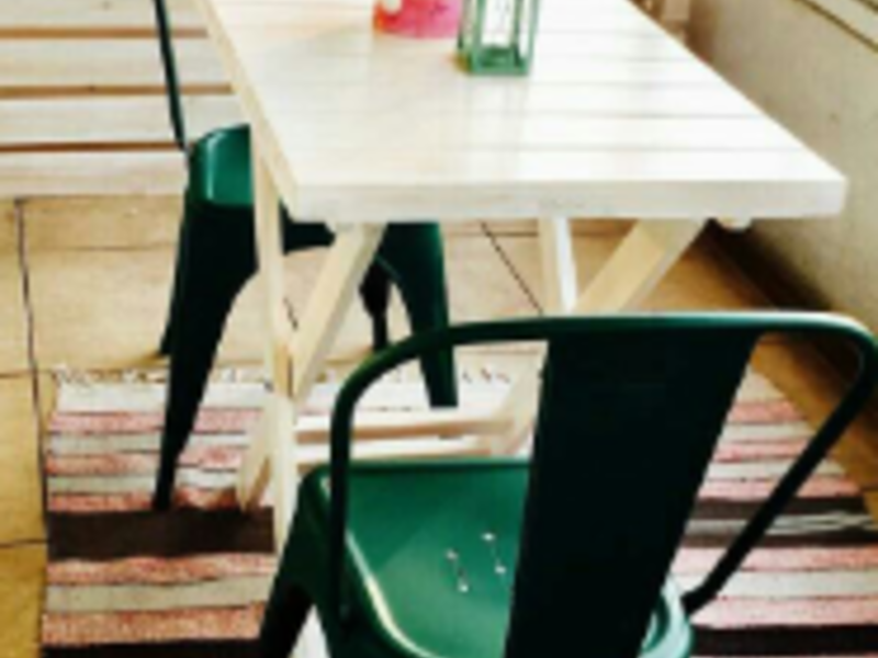Un conjunto de mesa y silla para una sola persona, ideal para espacios pequeños como cocinas pequeñas o apartamentos.