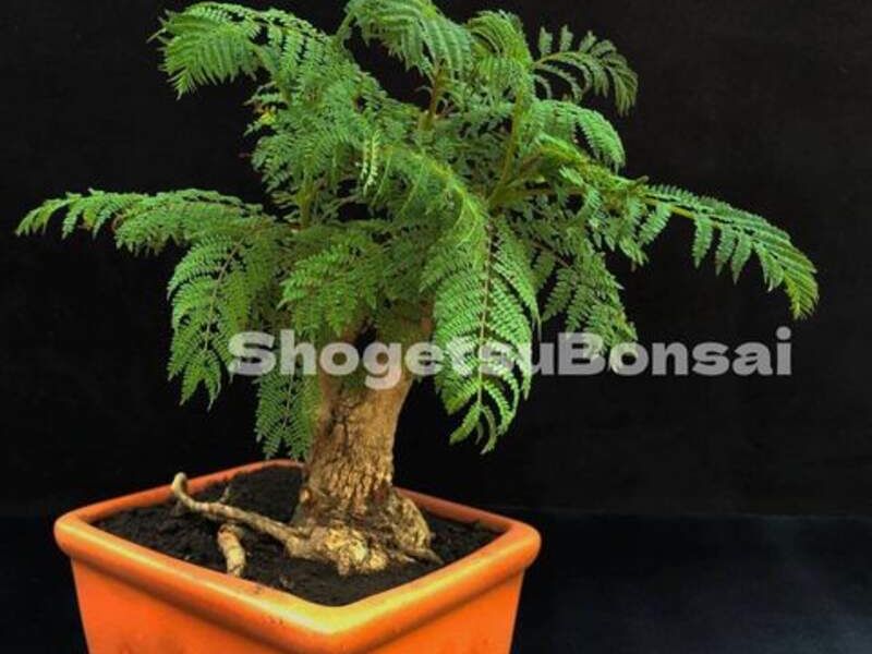 Árbol bonsai jacaranda (jacaranda mimosifolia) bien establecido