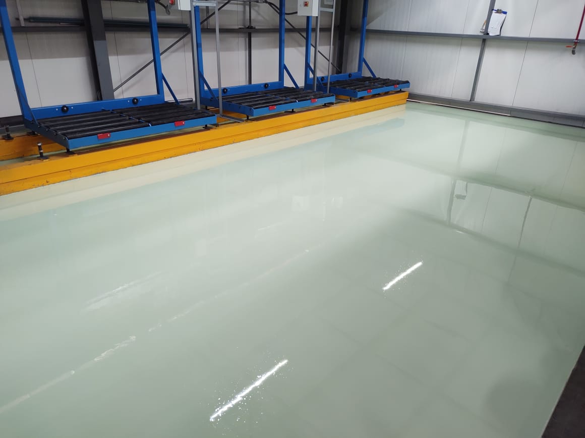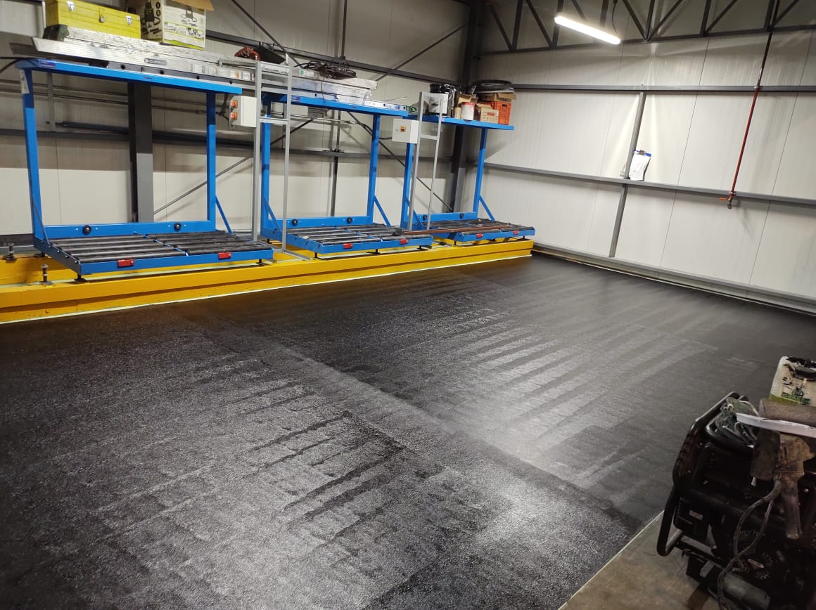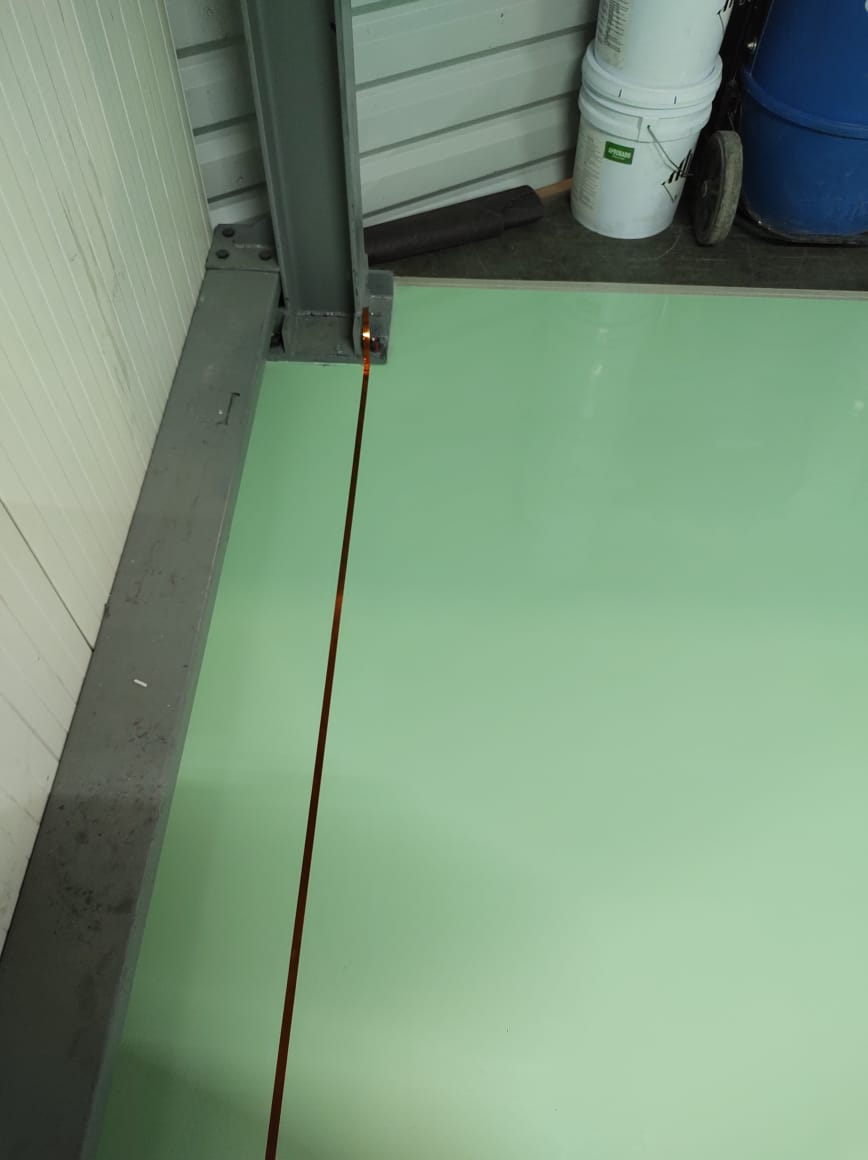 - Aplicación de primario, track epoxico, capa conductiva, enmallado de cobre aterrizado, epóxico ESD y conexión a tierra