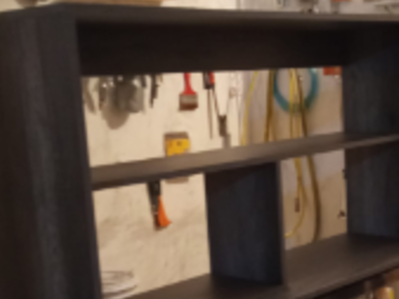 Estantería montada en la pared, posiblemente con estantes flotantes o soportes invisibles.