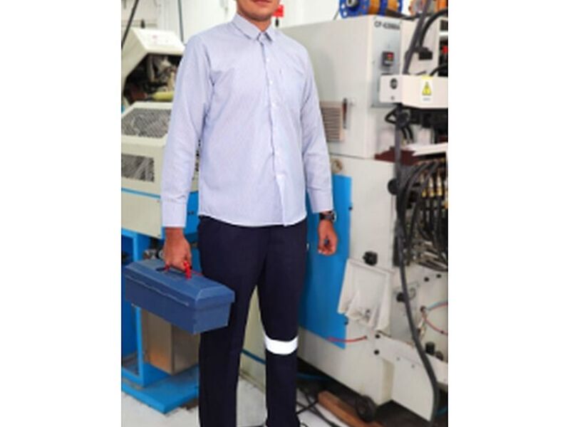 Composición: camisa: 65% poliéster / 35% algodón, pantalón: 60% algodón / 40% poliéster. Camisa de manga larga con siete botones al frente y botón en puños. Pantalón de presillas con: Bolsas laterales y Tiras antireflejantes.